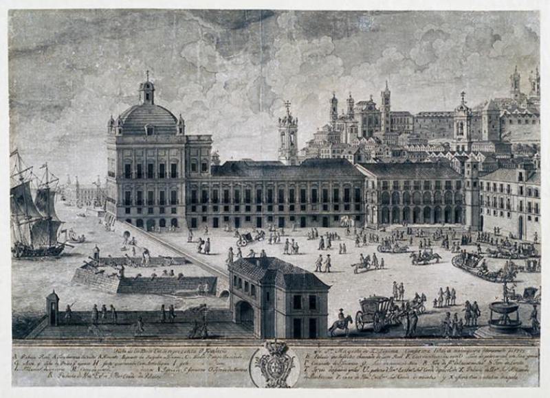 As riquezas do Paço da Ribeira sumiram-se no Tejo. Arrasadas também as numerosas dependências, a Varanda das Damas; a Armaria, a Casa da Índia, a Ópera, o Pátio da Capela, e a famosa Torre do Relógio, na face O. Do Terreiro; o Cais da Pedra, já do Séc. XVII, o Baluarte de S. João, o Forte da Vedaria, a Alfândega do Tabaco e parte da Alfândega Nova, na parte S.; a casa dos Contos, o Tribunal das Sete Casas, o Paço da Madeira, o pórtico do Terreiro do Trigo, no lado E.; os arcos das antigas muralhas da cidade, o Açougue Real, as Casas de Ceuta e as Varandas do Terreiro, na face N.