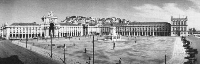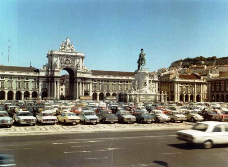 O automóvel impõe-se na organização espacial e funcional da Praça do Comércio,